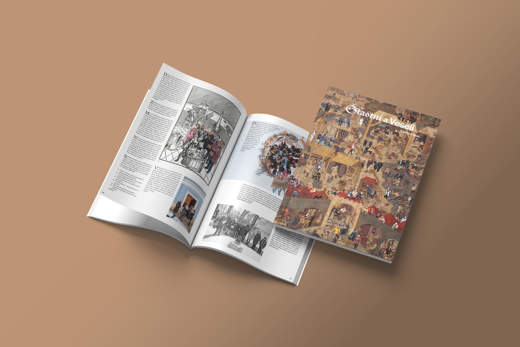 Katalog k projektu ŠŤASTNÍ A VESELÍ je koncipován jako symbolická cesta kolem světa, inspirovaná slavným cestopisem Cesta kolem světa za 80 dní od Julese Verna. Stejně jako tato literární předloha zve i katalog čtenáře na putování – tentokrát napříč projektem a jeho zastávkami v Kutné Hoře.